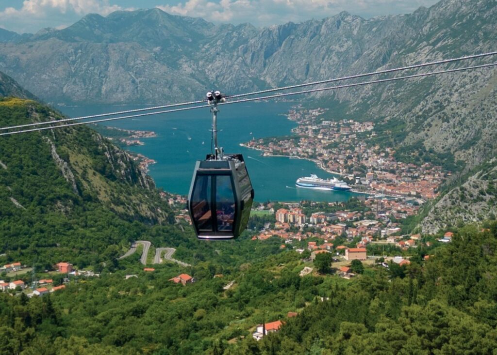 Kotorski zaliv iz busa, žičnica na Njeguše, adrenalinsko čakanje na Fadilov bus in imenitno kosilo v Njeguših.