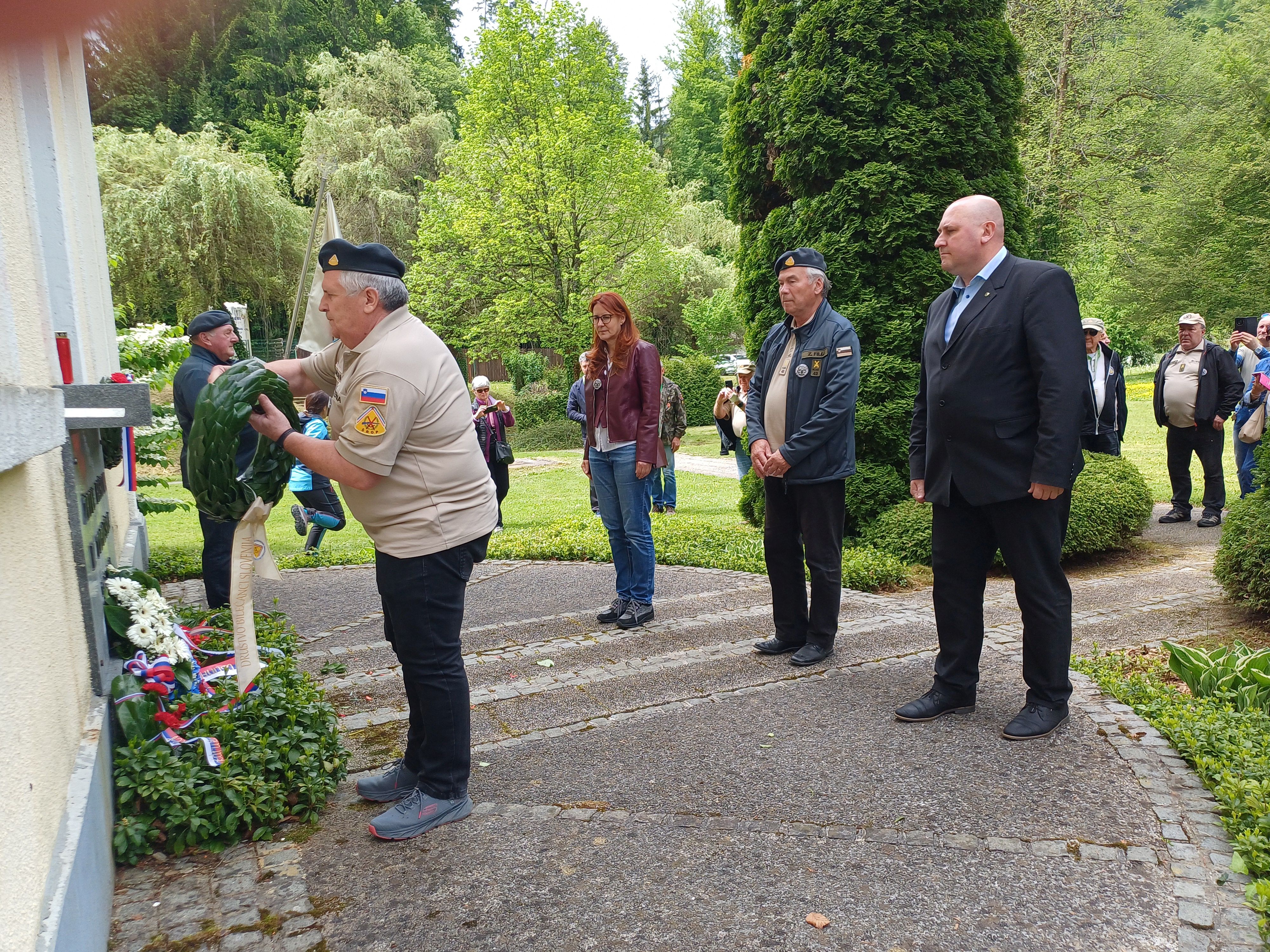 Odpravili smo se še v Topolšico. Pozdravila sta nas župan Šoštanja Boris Goličnik in ministrica za pravosodje Andreja Katič. V čast zmagovalcem II. svetovne vojne smo ob Spominski sobi 9. maj 1945 položili venec.